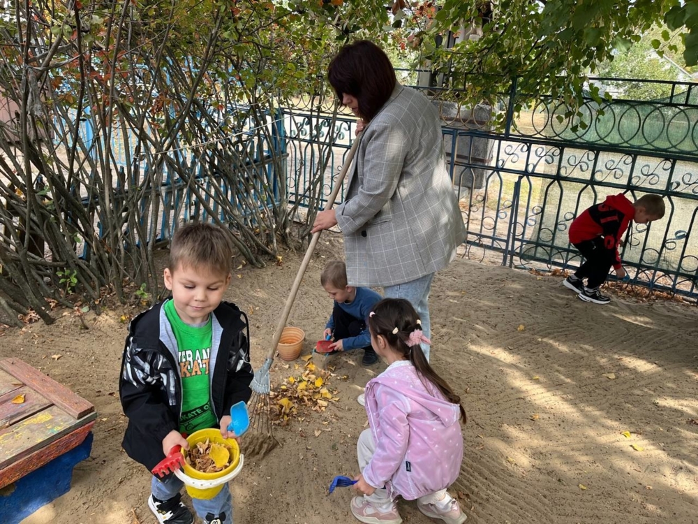 В рамках Всероссийского экологического субботника «Зелёная Россия», воспитанники и педагоги ГБДОУ ЛНР "Новопсковский ясли-сад "Теремок" убирали листья, мусор и приводили в порядок участки детского сада, формируя таким образом комфортную и эстетически привлекательную среду.